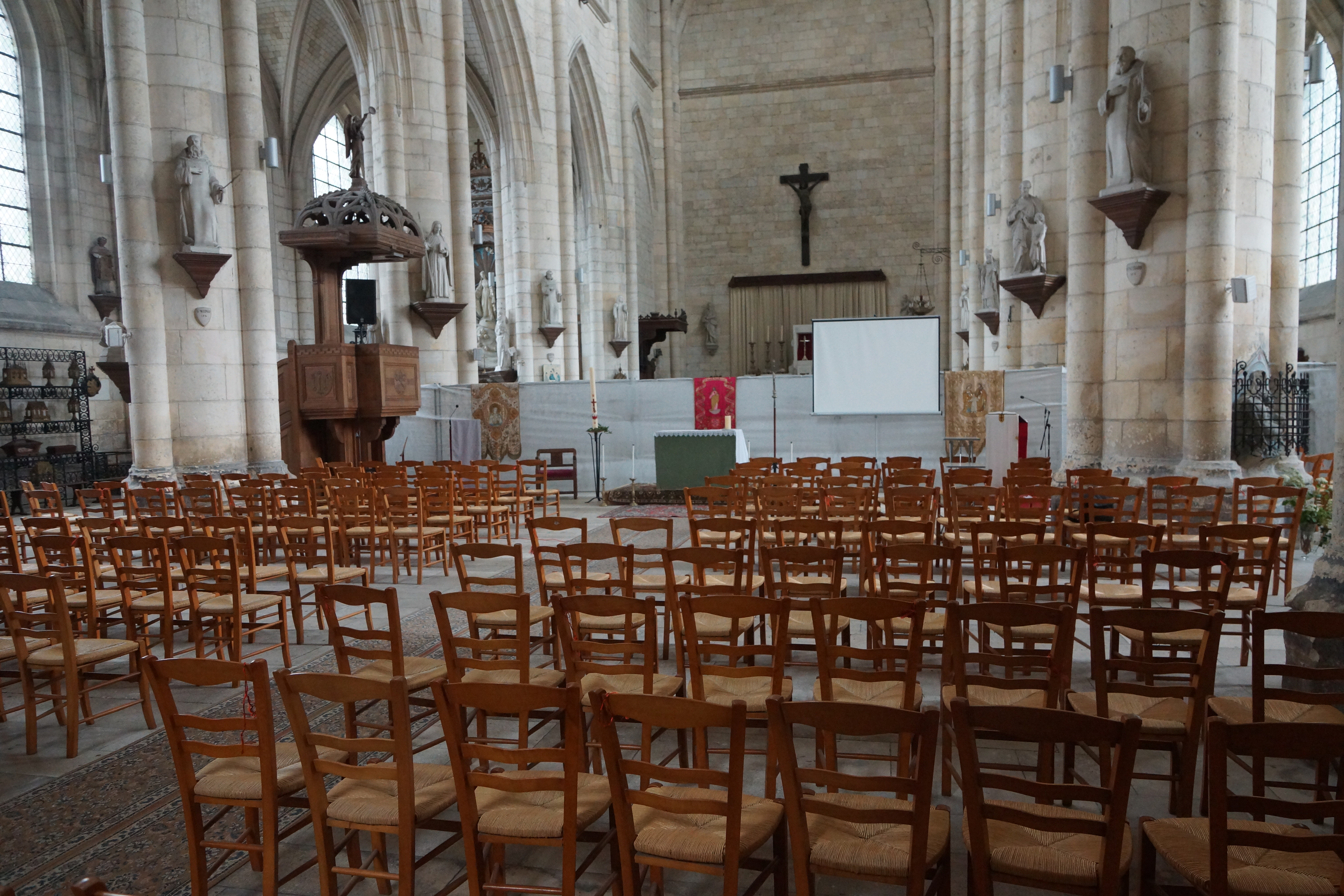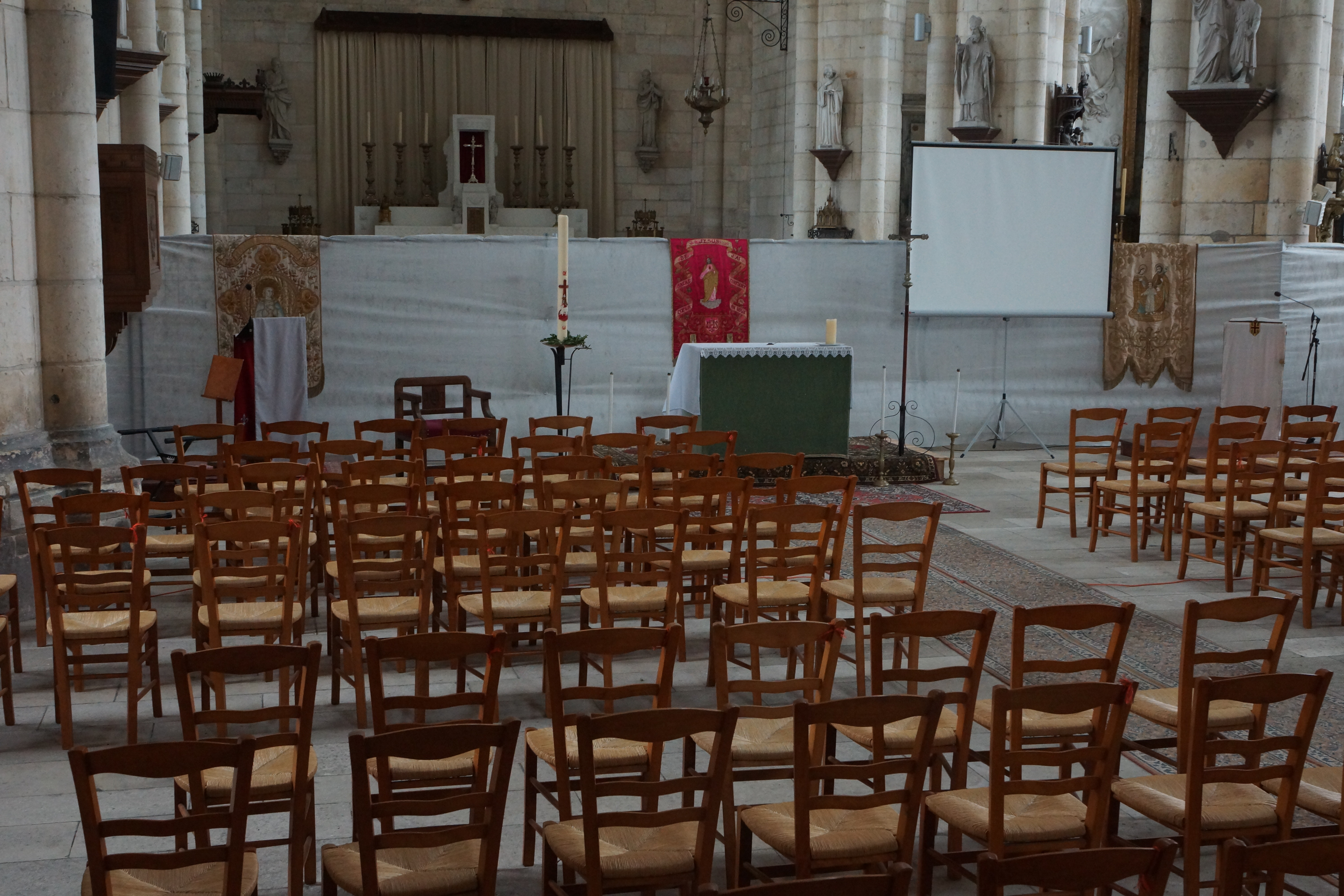 Notre curé, aidé par quelques paroissiens, a donc procédé à un réaménagement de la partie de la nef restant accessible afin de limiter dans la mesure du possible la gène provoquée par cette situation.