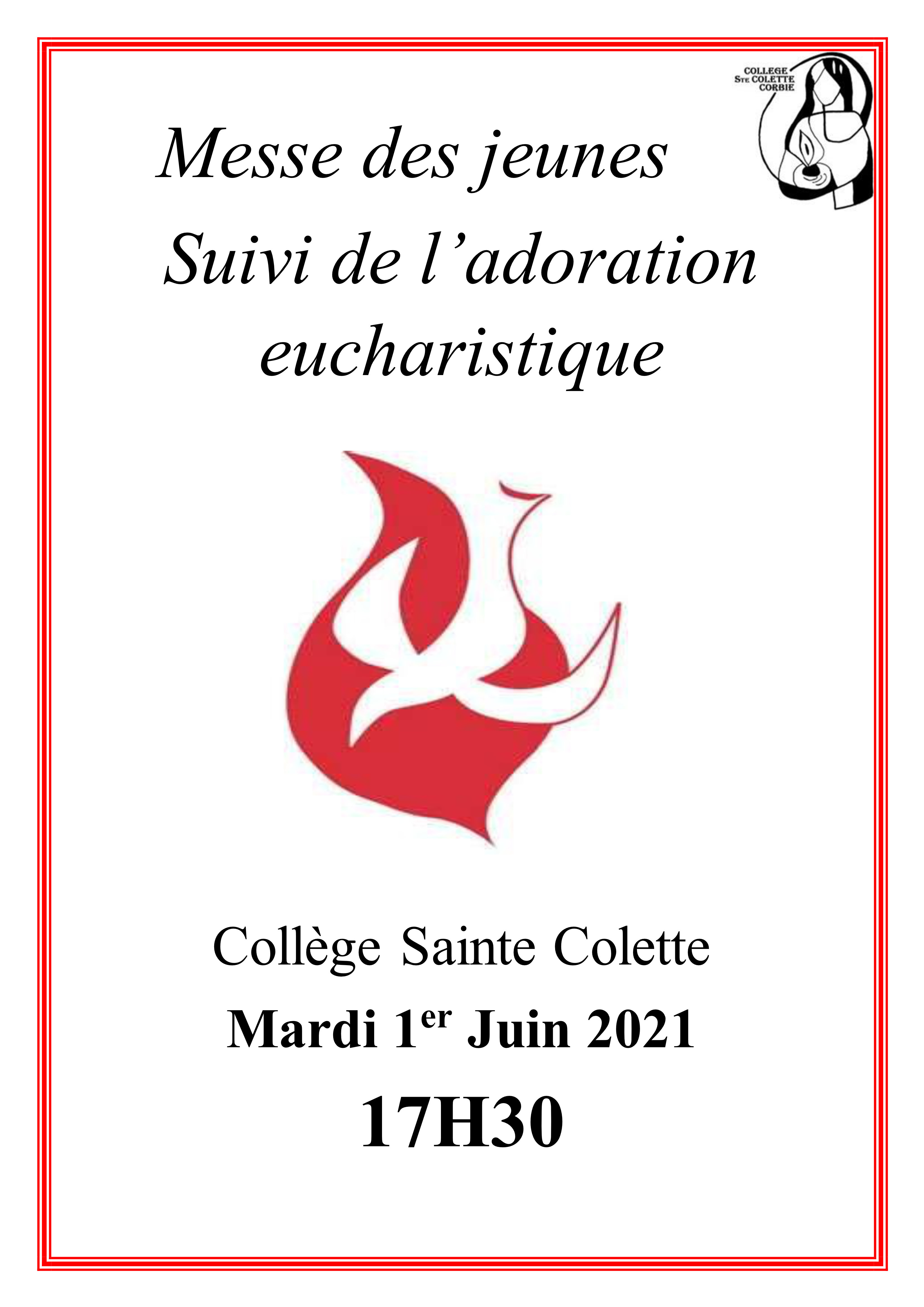 Publié le 21 Mai 2021, dans Annonces, calendrier, Information, temps liturgiques. Bookmarquez ce permalien. Commentaires fermés sur Messe des jeunes mardi 1er juin 2021.