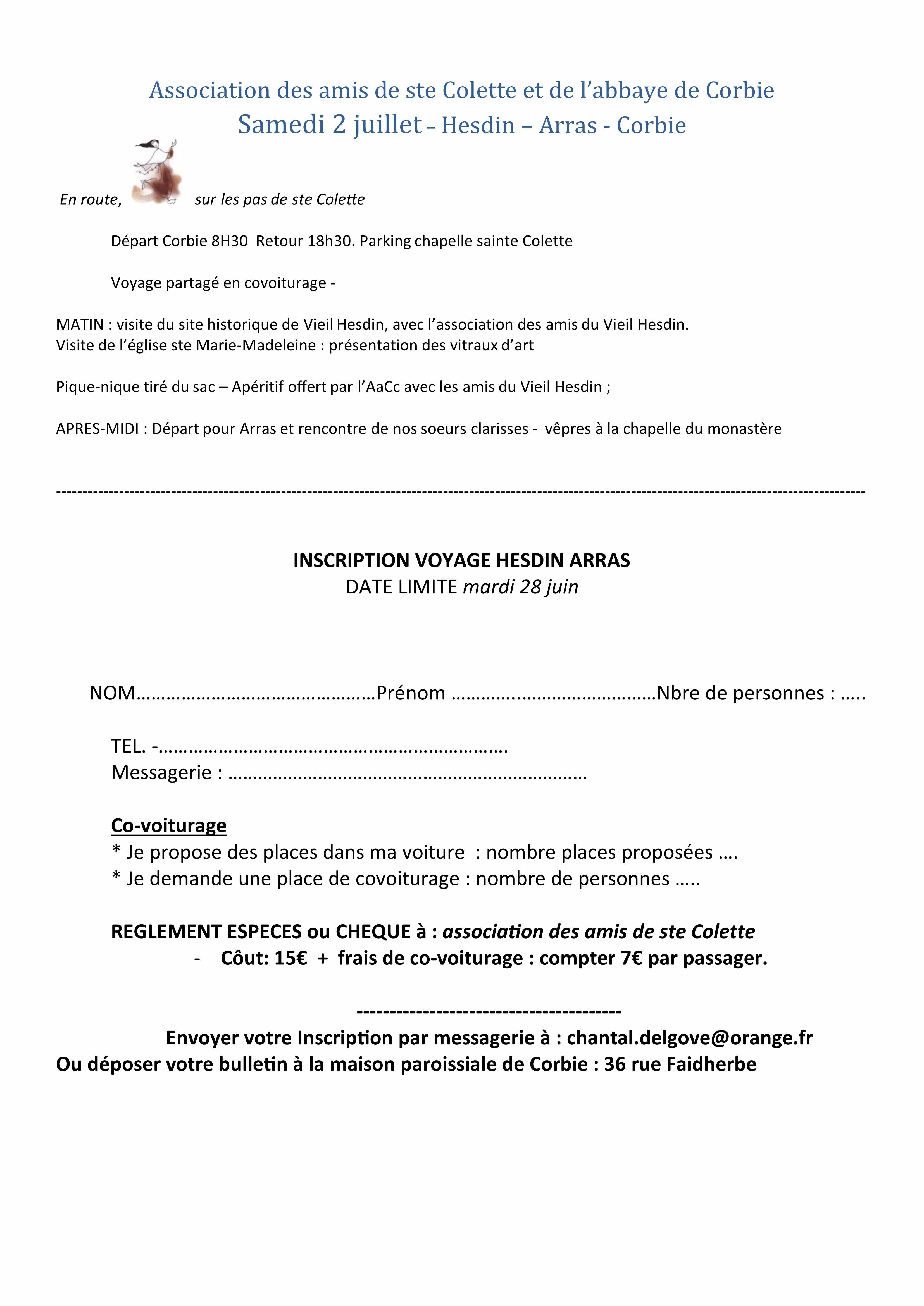 – Beau pèlerinage organisé par les Amis de Sainte Colette et de l’Abbaye de Corbie, ouvert à tous, sur les pas de Sainte Colette, à Hesdin et chez les Sœurs Clarisses d’Arras. Transport partagé en covoiturage. Fiche d’inscription téléchargeable ici… Venons nombreux.
