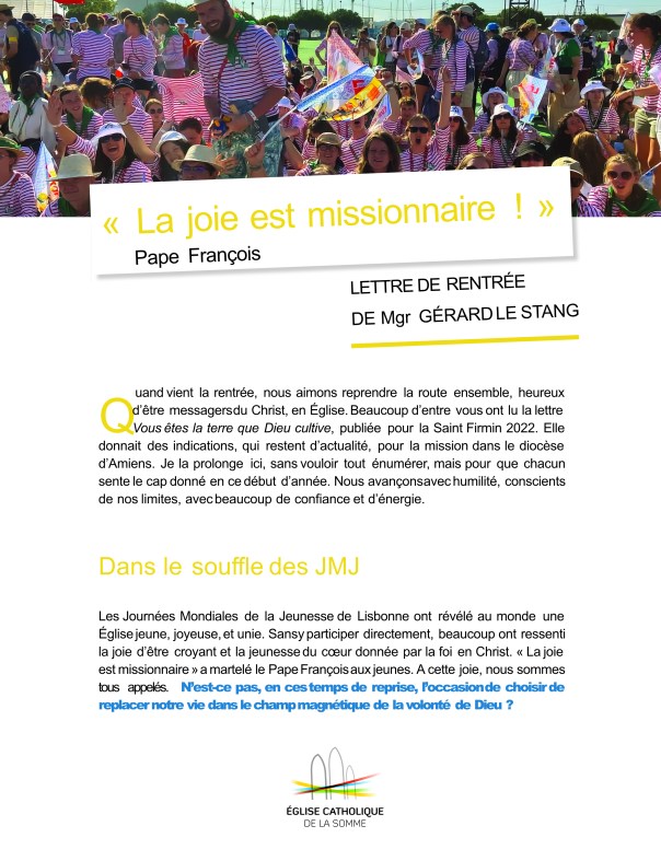 Publié le 25 septembre 2023, dans diocèse, Message de notre évêque, et tagué diocèse, Message de notre évêque. Bookmarquez ce permalien. Commentaires fermés sur Lettre de rentrée de Mgr Gérard LE STANG.