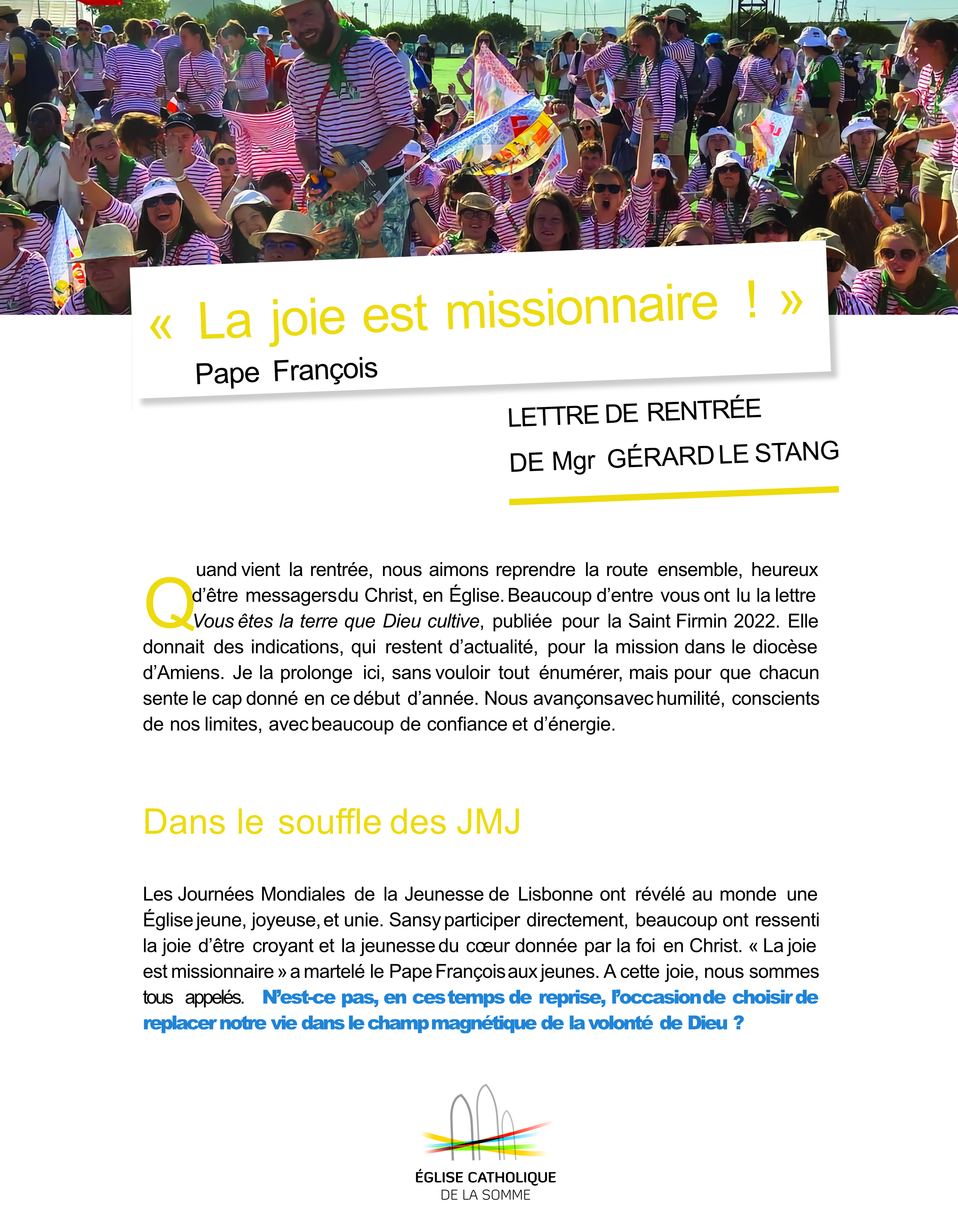 Publié le 25 septembre 2023, dans diocèse, Message de notre évêque, et tagué diocèse, Message de notre évêque. Bookmarquez ce permalien. Commentaires fermés sur Lettre de rentrée de Mgr Gérard LE STANG.