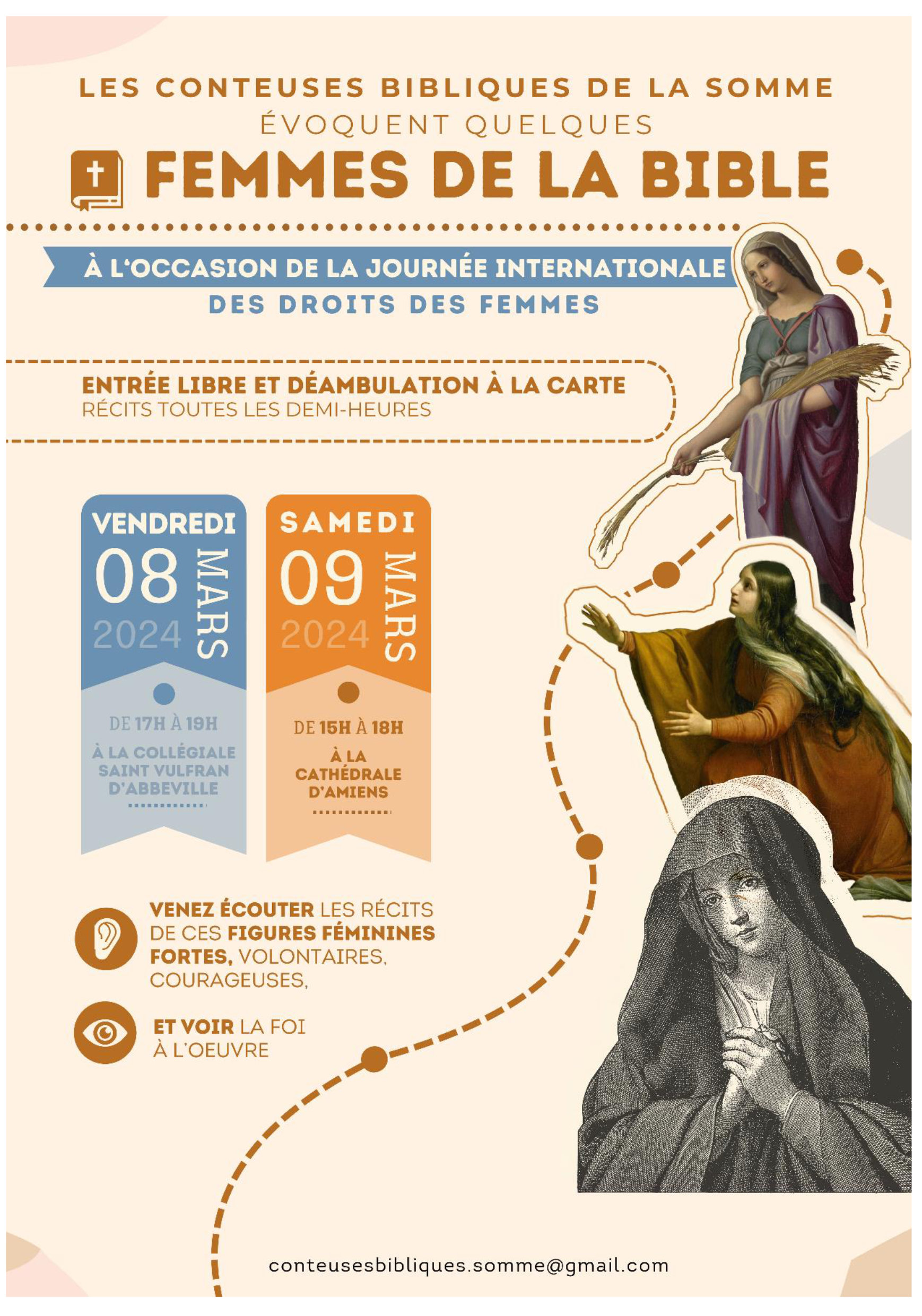 Publié le 2 mars 2024, dans Annonces, calendrier, diocèse, et tagué Annonces, diocèse. Bookmarquez ce permalien. Commentaires fermés sur Quelques femmes de la Bible, samedi 9 mars à la cathédrale.
