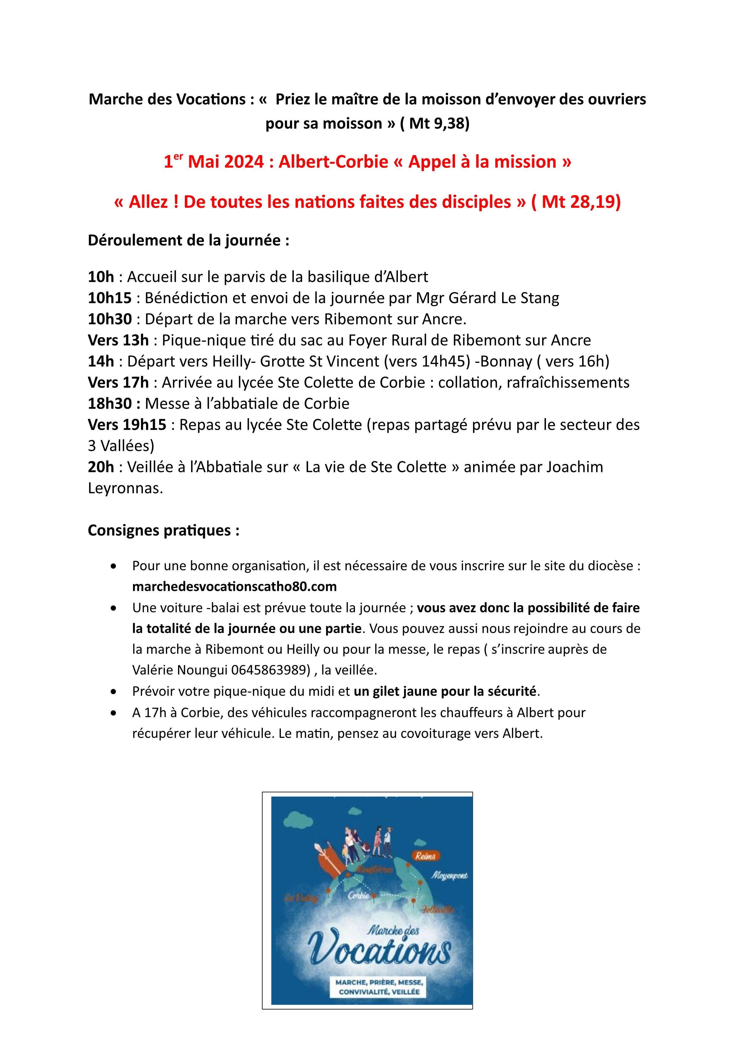 Le pèlerinage diocésain pour les vocations passe à Corbie le 1er mai : appel à participation